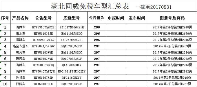 湖北同威汽車公司設有固定裝置免稅車輛圖冊匯總