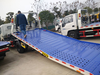 該車平板長度為5.3米(含液壓伸縮加長部份),寬2.22米,3P2A折疊沖壓式平板,帶100CM液壓伸縮式可加長平板。該車采用國標(biāo)優(yōu)質(zhì)碳鋼花紋板制作,平板由多塊壓制預(yù)壓板組成,10根加強(qiáng)型槽鋼橫梁固定,既減輕了整車重量,又增加了托舉和裝載能力。 大承載質(zhì)量為2.5噸,平板 小傾斜角為8度,托舉系統(tǒng)額定托舉質(zhì)量為1.2噸,采用1個4噸液壓絞盤,加粗鋼絲繩20米,一個工具箱,一個洗手箱,該車配備6個綁帶,鏈鉤一條,可選裝LED長排警燈。