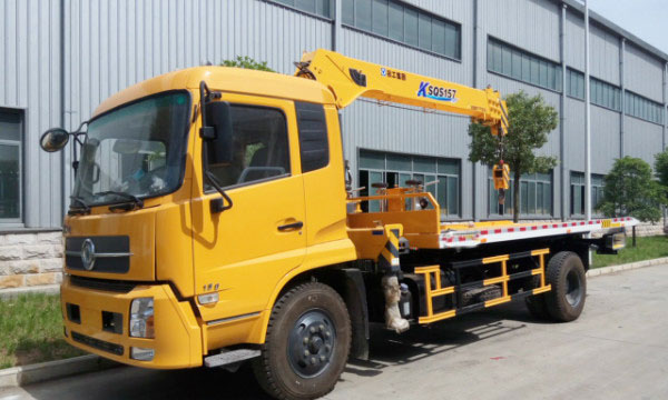 ◆東風(fēng)天錦平板帶吊機一拖二道路救援清障車: