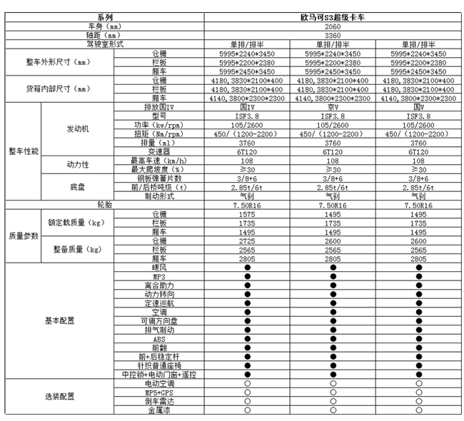 2060mm豪華寬體前翻駕駛室,軸距3360mm,康明斯ISF3.8發(fā)動機142馬力,6T120變速箱,前橋2.85噸,后橋6噸,7.50R16鋼絲胎,氣剎,離合助力,動力轉(zhuǎn)向,定速巡航,可調(diào)方向盤,排氣制動,ABS,電動門窗,中控鎖,遙控鑰匙,原廠空調(diào)。